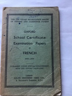 Oxford school certificate examination papers in French 1930 to 1938 the 10 years examinations series of Oxford and Cambridge papers