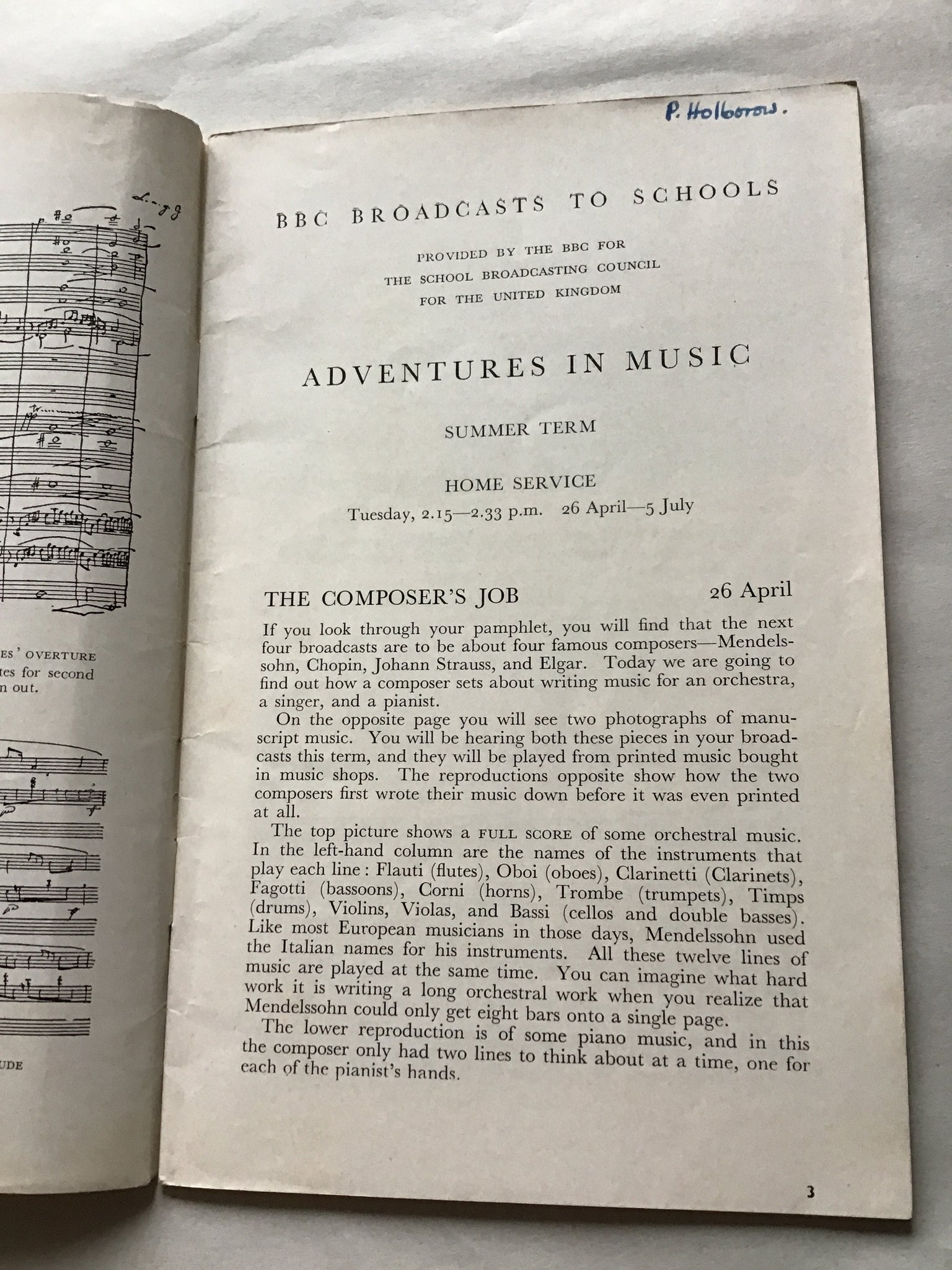 ADVENTURES IN MUSIC ORCHESTRAL CONCERT SERIES BROADCASTS TO SCHOOLS SUMMER TERM 1949