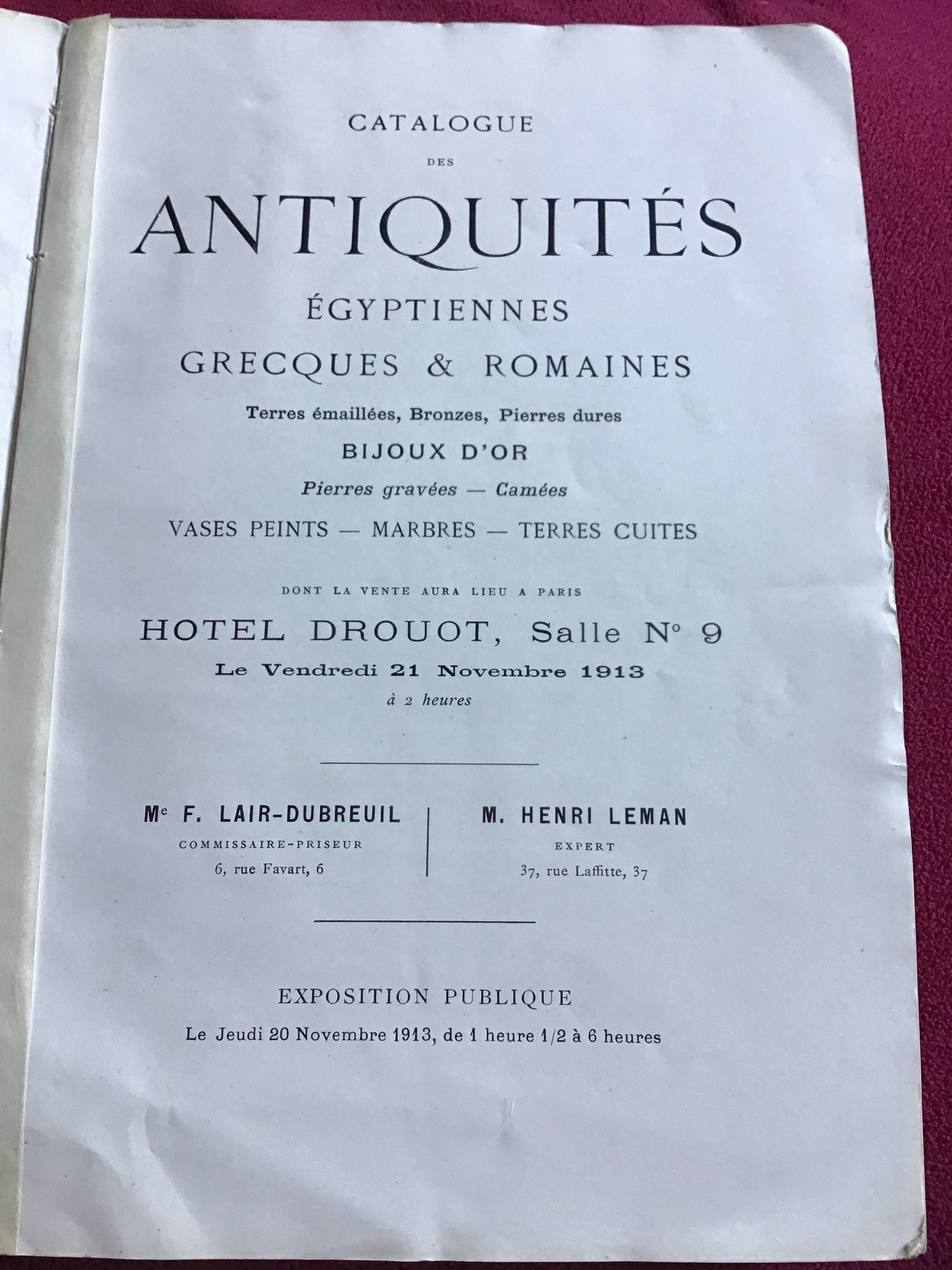 Thursday, November 20, 1913, from 1.2 to 6 hours CATALOG OF EGYPTIAN ANTIOUITIES