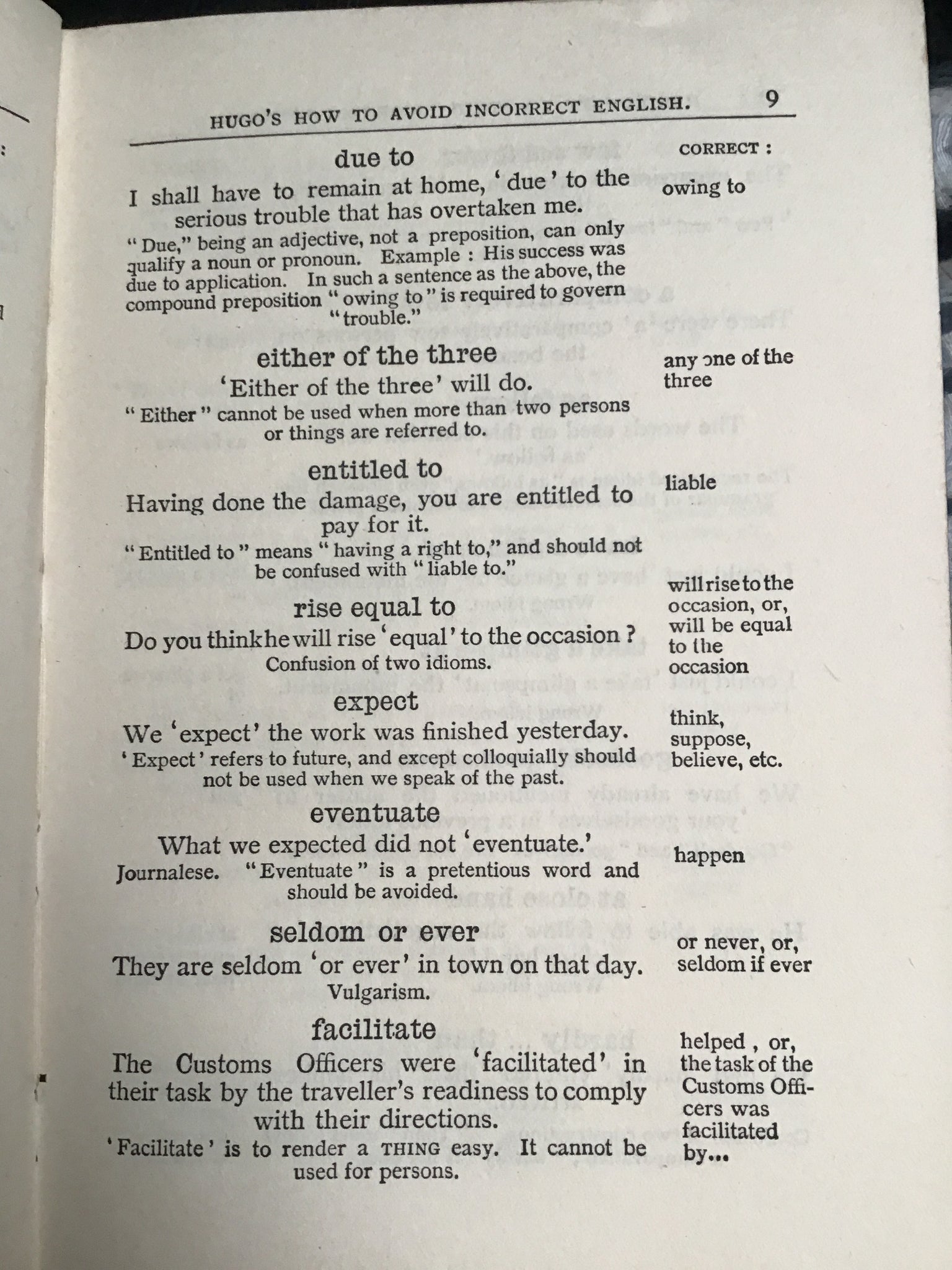 HUGO's HOW TO AVOID INCORRECT ENGLISH Copyright registered. All rights reserved. HUGOS LANGUAGE INSTITUTE, LONDON : 103 NEWGATE STREET, E.C. 1.