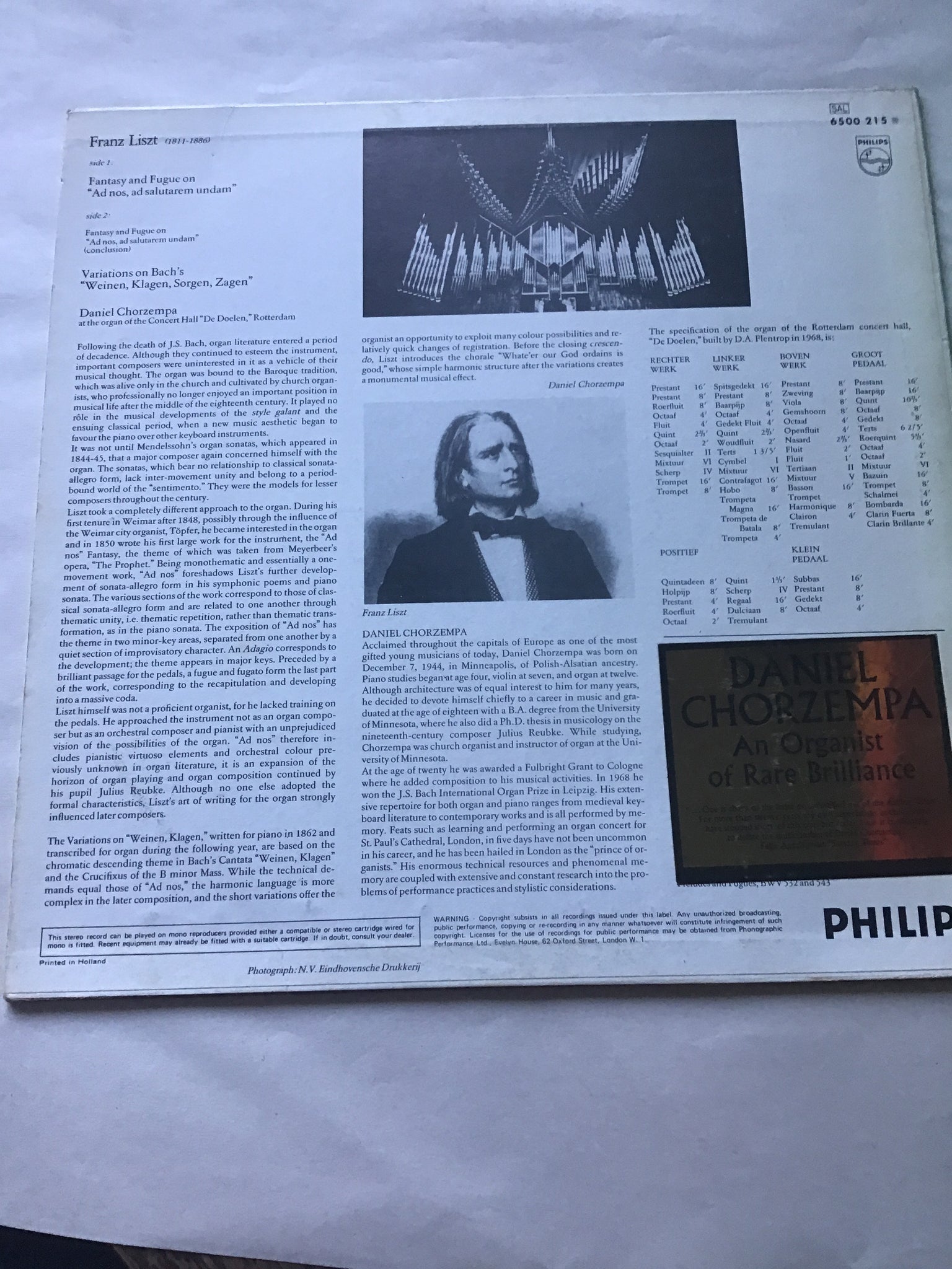 AT THE FLENTROP ORGAN  OFDE DOELEN"  ROTTERDAM LP vinyl philips