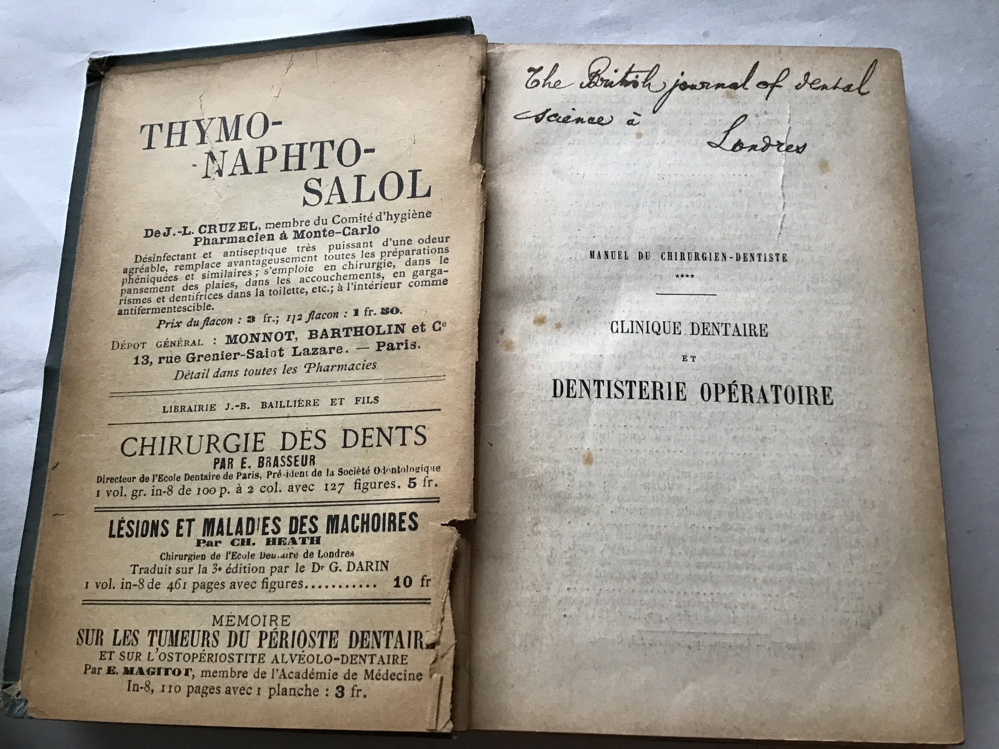 Manuel du Chirurgien Dentiste Clinique Dentaire et Dentisterie Opératoire par Ch. Godon PARIS J B. BATLLIERE ET FIES Hardcover 1897. Good